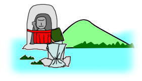 いつの頃からか、村人にまぎれ、眼を患った幼娘(おさなご)が母に手を引かれてお参りする姿がありました。長かった戦乱も止み、今はお参りする村人の姿はなく、お地蔵様は落ち葉に埋もれ、あの母娘(おやこ)の姿と共に人々の記憶の彼方へと消え去りました。 時は流れて幾星霜、里の山桜は芽吹きはしましたが、まだ吹く風寒い水辺にお地蔵様を洗い清め、静かに手を合わせる見知らぬ老婆の姿がありました。村長(むらおさ)夫婦は一夜の宿にと水辺の館に招き、老婆の身の上話に耳を傾けるのでした。 --- 昔、戦(いくさ)に駆り出された父の無事を祈り、母と毎日のようにこのお地蔵様に手を合わせました。母は逝き、父も帰ってきませんでした。寄る辺もなく、父の縁者であったという商人に引き取られました。「きっと会える」との母の言葉を固く胸に秘め商人について諸国を巡り、いつしか眼の病も癒えました。しかしとうとう父には巡り会えませんでした。残された人生もあとわずか、旅の終わりに今は故郷のこのお地蔵様の前で、両親と共に暮らし貧しくとも楽しかった昔を偲んでおりました。私は落ち葉に埋もれたお地蔵様を見て驚きました。お地蔵様の目がなかったのです。お地蔵様はその目を私に与えてくださったのだと思います。そしてお地蔵様のあの笑顔は、「きっと会える」と言った、優しかった母の様でした --- 村長夫婦の目から止めどもなく涙が溢れ落ちました。もうとうに日も暮れたというのに、三人は囲炉裏を囲み、手を取り合い、夜のふけるのを忘れて語り明かしました。やがて館には幼娘とその両親の楽しそうな声が響き渡っていました・・・。 それからというもの、人々はそのお地蔵様を誰言うともなく、「眼福(がんぷく)地蔵」と呼ぶようになりました。 |
